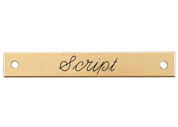 In an ideal size for pony halters, this Small Beveled Edge Halter Nameplate in brass is a beautiful way to identify your leather halter. Your nameplate will be engraved for you in the USA. Choose Block, Old English, Roman or Script letters, then enter the words you would like engraved. Predrilled 5/32″ holes fit rivets (included) for attaching. Personalized items are not returnable.