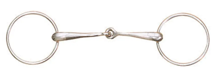 The Centaur® Hollow Mouth Loose Ring Bit is a mild, lightweight, single-jointed snaffle bit that acts on the lips, palate and bars. Made of stainless steel, it has a 20mm mouthpiece and 65mm rings.