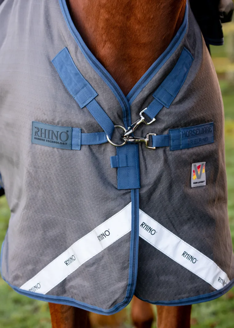 Best HORSEWARE ® Ireland Rhino® Plus HexStop Vari-Layer® 250 Gram Medium-Weight Turnout Blanket Grey/Indigo/Navy
