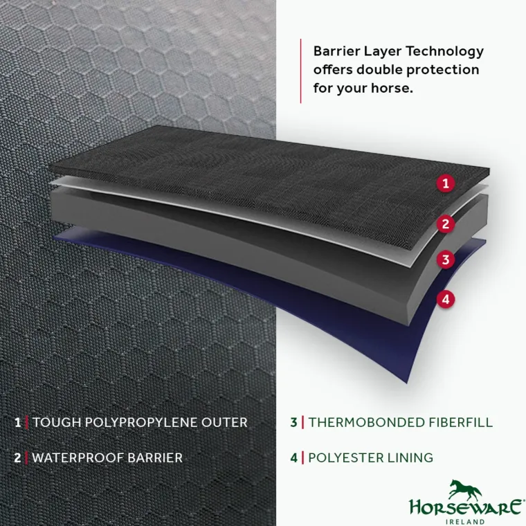 Waterproof and breathable, the outer offers the ultimate strength properties. And as always, the Rhino has the unique, long-lasting Barrier Technology with Aquatrans Coating which offers an additional inner waterproof layer to protect your horse even if the outer shell becomes damaged.