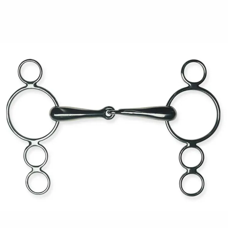 The Metalab Single-Jointed Continental Gag is a Level 3 bit made of stainless steel. Features an 17mm mouthpiece and continental gag cheeks.
