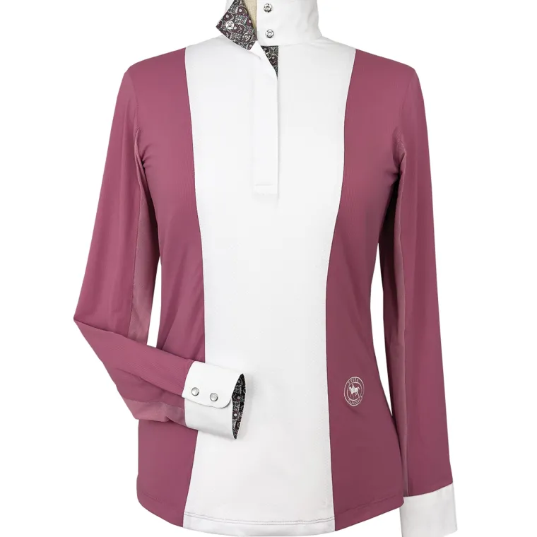Essex Classics Luna Long-Sleeve Show Shirtartfully combines the classic good looks of a crisp white shirt in the show ring with a colorful appeal. Paired with a show coat, the white front panel, collar, and cuffs make a crisp, clean presentation in the ring. Without a coat, the color body provides a flattering feminine silhouette and the practical advantage of staying clean throughout the day. Expertly tailored of high-performance, moisture-wicking fabric with all the fine details you expect from Essex Classics.