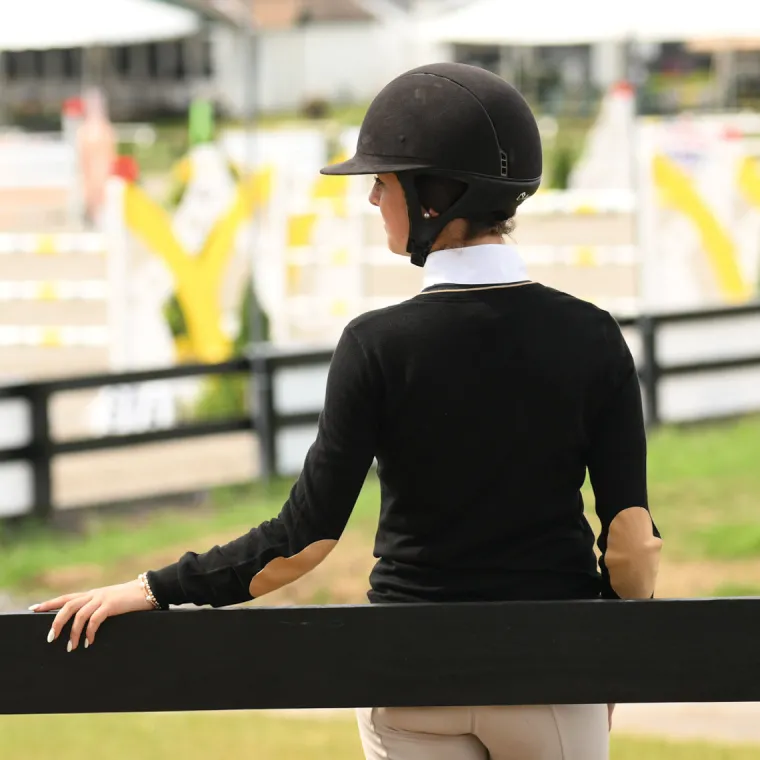 Knit in extra fine yarns, the Essex Classics Trey V-Neck Sweater is lightweight and breathable. Expertly knit in extra fine cotton andacrylic yarns with innovative climate control performance for ultimate comfort and easy wash and wear care. Smart equestrian inspired elbow patches and contrast trim provide a fashionable twist.