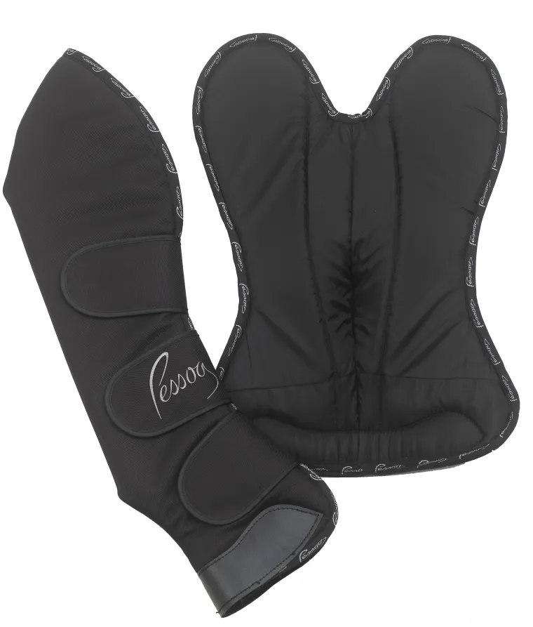 Made from ballistic weave nylon, Pessoa Shipping Boots have a contour shape, hoof protectors and large VELCRO® brand closures for comfort and protection. Pony size front 17 1/2″H, hind 22″H. Horse size front 21″H, hind 26 1/2″H.