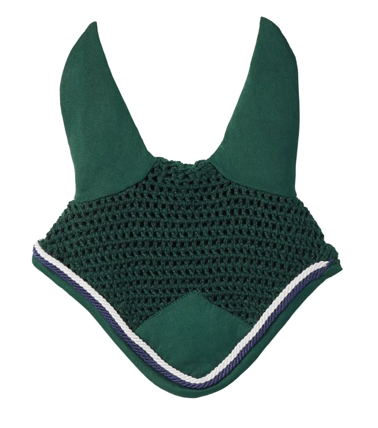 The Rider’s International™ Piped Ear Bonnet fits closely under your horse’s bridle without the need for a throatlatch tie to worry about. Offered in an array of colors to mix and match with your saddle pads, this knitted cotton fly veil has stretch nylon ears to ensure comfort. It is embellished with offset silk rope piping and has a woven front patch perfect for monogramming.