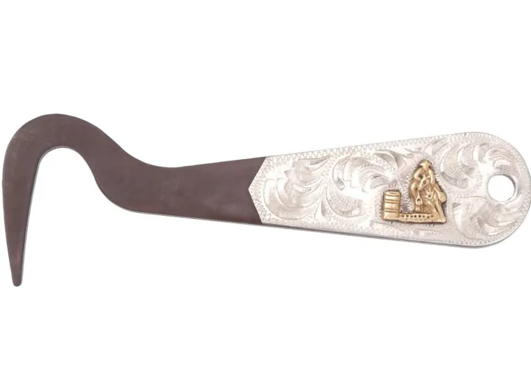 Tough-1® Antique Brown Hoof Pickfeatures a gorgeous antique brown finish and features an engraved silver overlay design. It’s the perfect item for a gift or an award!