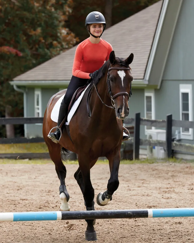 The athletic cut lets the young rider stand up to any challenge—in the saddle or out. Perforated sleeves and back enhance breathability and airflow in areas that perspire most.