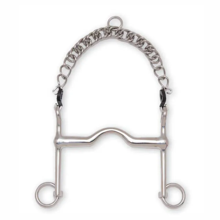 The Metalab Medium Port Short Shank Weymouth is a Level 4 curb bit. Made of stainless steel, it features a 16mm diameter mouth with medium port and short shanks. Curb chain and hooks included.