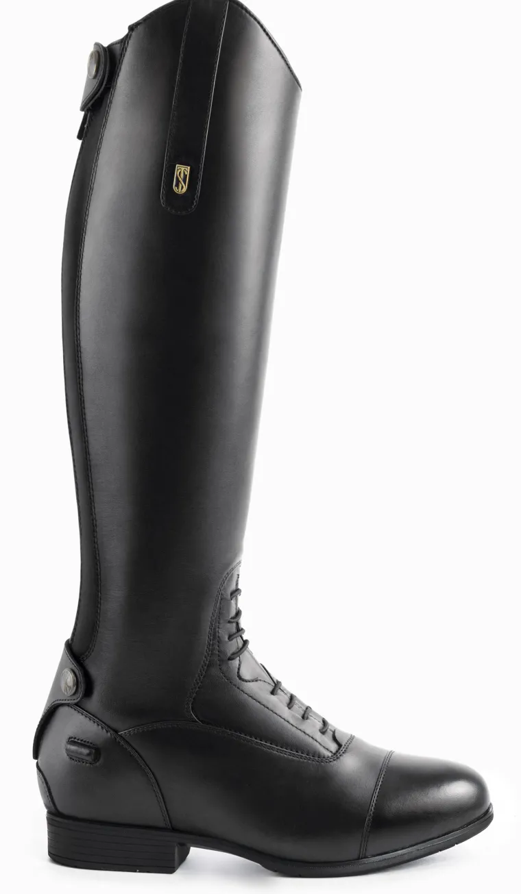 The Donatello III is a European design crafted from high-quality leathers. Featuring refined styling, it comes in a wide range of sizing options. It is made with a high-tensile stretch panel, a durable rear zipper and an elasticized closure for ease of use and a comfortable fit. It is built on a revolutionary advanced rubber sole that not only improves stirrup grip, but is durable.