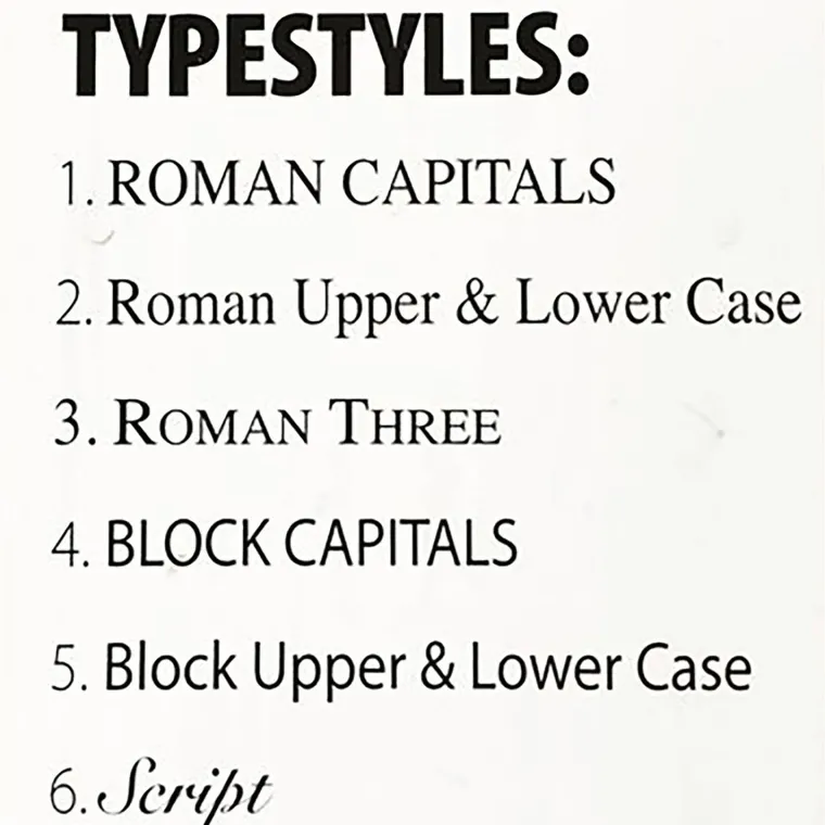 The nameplate can be engraved with up to two lines. Each line can hold a maximum of18 or fewer characters, including spaces. Choose a lettering style and enter the text to be engraved: