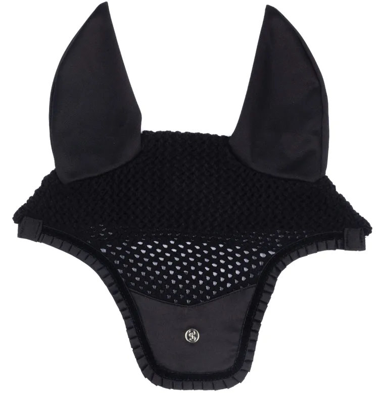 The PS of Sweden Ruffle Ear Bonnet is carefully shaped for fit. Hand-knitted crochet body has an antibacterial, odor-resistant finish and decorative ruffle edge. Stretchy ear covers made from breathable, antibacterial and quick-dry material keep flies out while allowing natural ear movements. PS logo emblem in front.