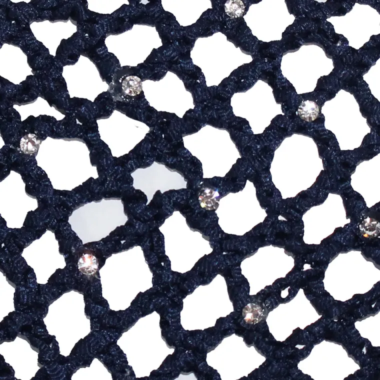 With the Hair Net Bun Cover, a neat and elegant appearance is all in the details. This hair bun cover is perfect for the stylish equestrian as it keeps hair securely in place while adding a hint of bling. A spring clip is attached to an elasticized fabric scrunchie. A crocheted net studded with sparkling clear rhinestone contains stray hairs.