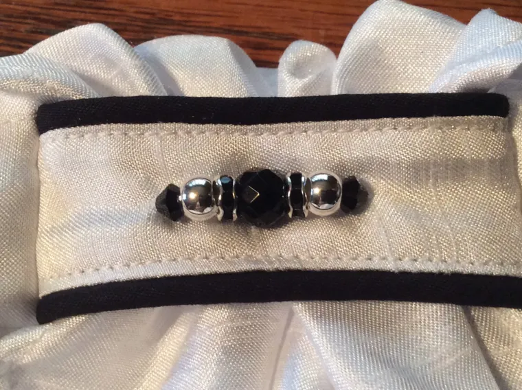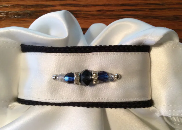 Beautifully sewn by hand, an All Tied Up Stock Tie adds refined and fashionable style to your dressage ensemble. Exquisite, washable fabric is decorated with beads that are securely sewn. No additional pinning is required for that touch of sophisticated sparkle. A sturdy hook-and-loop rear closure lets this dressage stock tie go on easily and stay put while you ride.