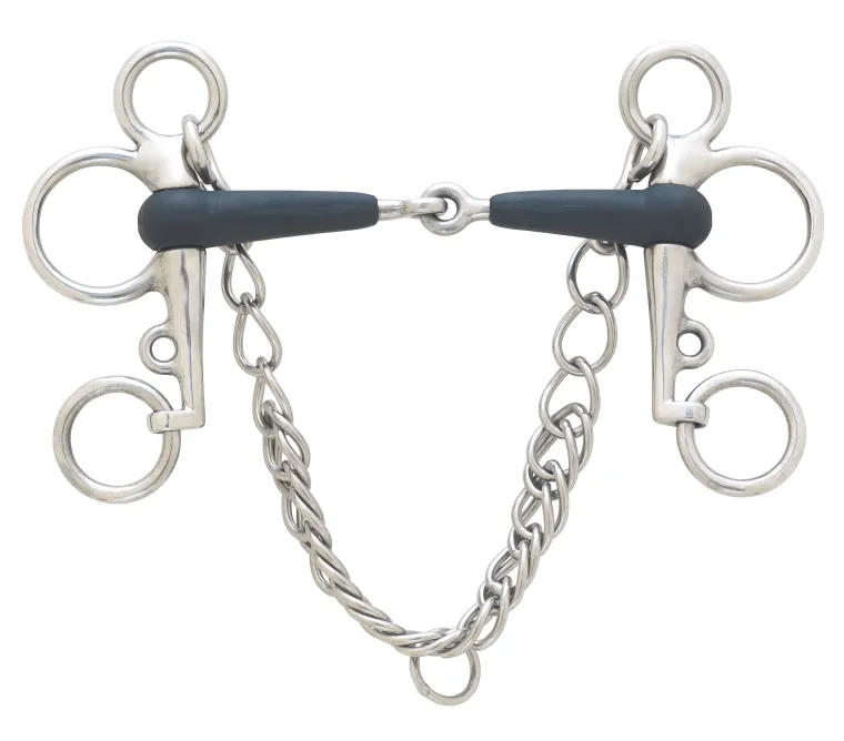 Compared to standard rubber mouth bits, EcoPure bits have refined, thinner mouthpieces and better strength and abrasion resistance. These bits are environmentally friendly as they’re engineered with materials that pass REACH’s strict standards. This EcoPure bit has stainless steel shanks and curb chain.
