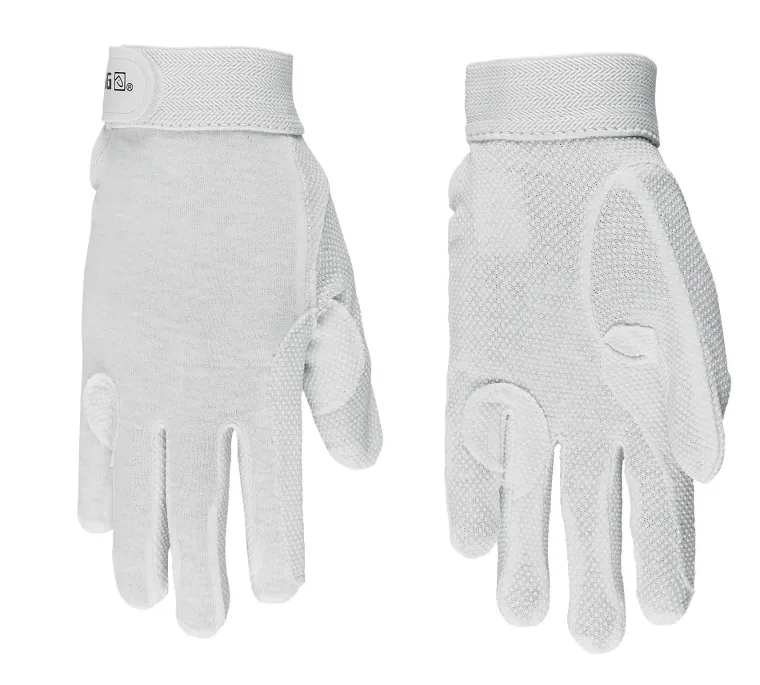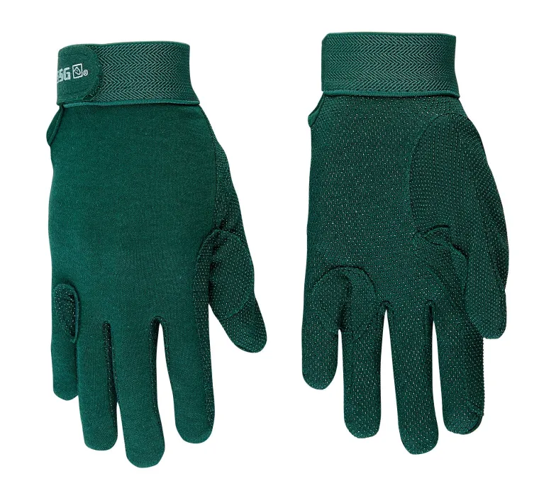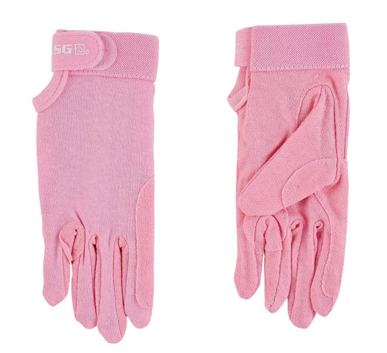 Functional, comfortable and economical! The SSG® Gripper® Riding Gloves are lightweight and cotton-backed—and come in so many fun colors you′ll want a pair for each day of the week. Pimpled, rubberized grips on palm and fingers help you keep a firm hold on your reins while a hook-and-loop fastener at the wrist keeps them secure.