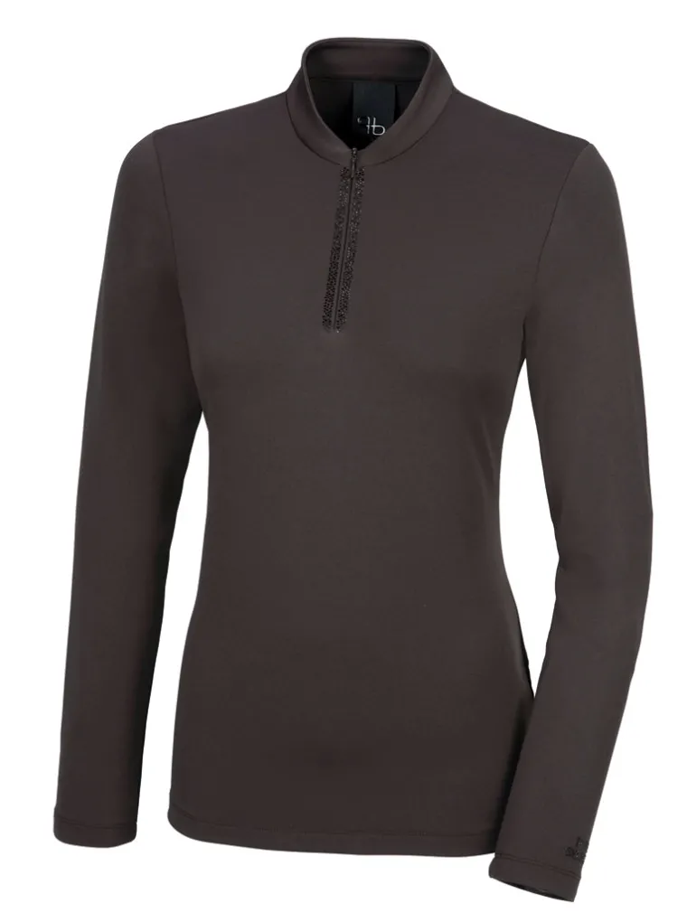 The Pikeur® Amabel Long Sleeve Shirt is cozy, soft and stretchy for cool-weather riding. Zip placket with stand collar and rhinestone applications near zip, on sleeve and in back.