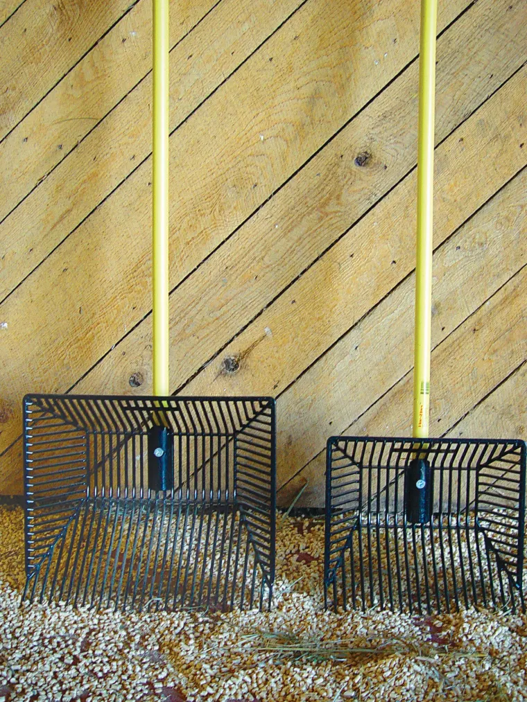 Designed to save time, the Fine Tines™ Fork features an angled basket with 30 closely spaced tines. This pitchfork sifts out even the small stuff and to reduce your stall picking time. Tough polycarbonate resists breaking.