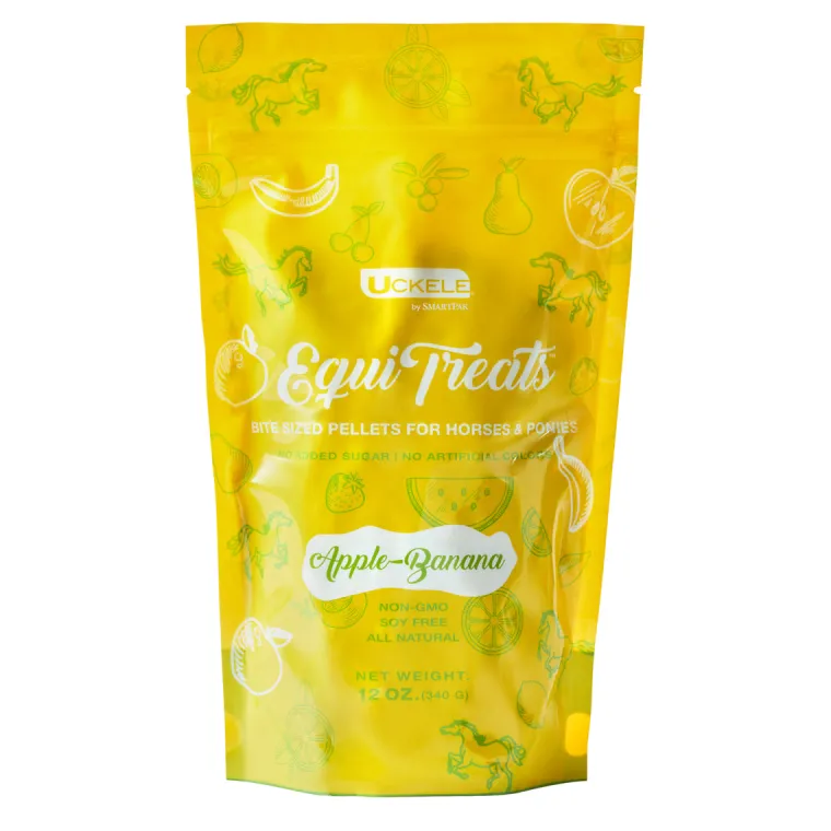Equi Treats™ Bite Sized Pellets by SmartEquine™ are tasty bite-sized treats made with Timothy grass, sunflower seed meal, natural flavors, and no added sugar or artificial colors. Equi Treats are a soy-free, non-GMO alternative to sugary treats that you can feel good about rewarding your horse with! Equi Treats are a useful training tool or just a fun way to bond with your horse. With the Timothy grass and sunflower base, it allows for horses with a sensitivity to alfalfa to be included in enjoying these tasty flavors! These high-fiber and low-fat treats are irresistible while avoiding the unnecessary added sugars found in many treats, making them the great choice for all horses. Irresistibletasty flavors: Peppermint, Apple Banana, Cherry Vanilla, Apple Pie, and Watermelon Basil Safe for even EMS and Cushing’s horses with less than 10% ESC and starch.