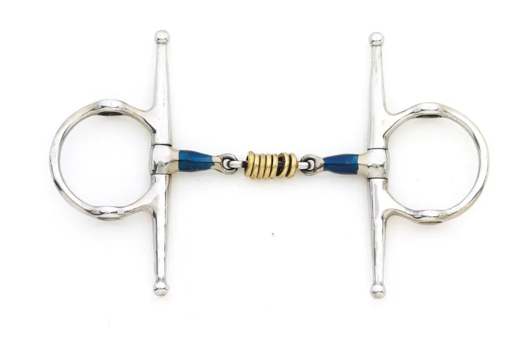 TheCentaur® Blue Steel Double-Jointed Disc Full Cheek Gag features a mouthpiece made of a technically advanced version of black steel (traditional sweet iron). Blue steel oxidizes more quickly and easily than black steel, creating a surface that tastes sweet to the horse. This taste naturally stimulates production of saliva, which in turn encourages optimal acceptance of the bit by the horse.