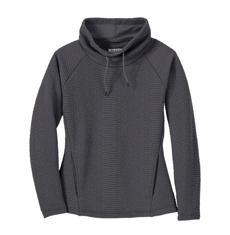 Bring out your wild side in the DS Mixed Animal Print Sweatshirt. A subtle, embossed alligator print on a comfortable stretch design elevates the classic sweatshirt to more elegant level. Brushed on the inside for softness, this breathable shirt has a wide slouch collar with slight crossover that makes it anything but ordinary. Discreet double-front hidden pockets and ample stretch let it look great and feel great in and out of the tack.
