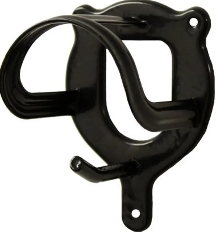 PVC-Coated Metal Bridle Bracket in black offers smart, wall-mount storage for a bridle, halter or other strap goods.