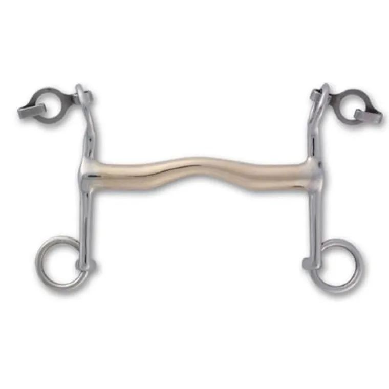 Port is bent forward at a 30 degree angle. Mouthpiece flattened on under side for tongue space. 5cm shank reduces leverage but allows quicker rein effect. Acts on tongue, bars and poll.
