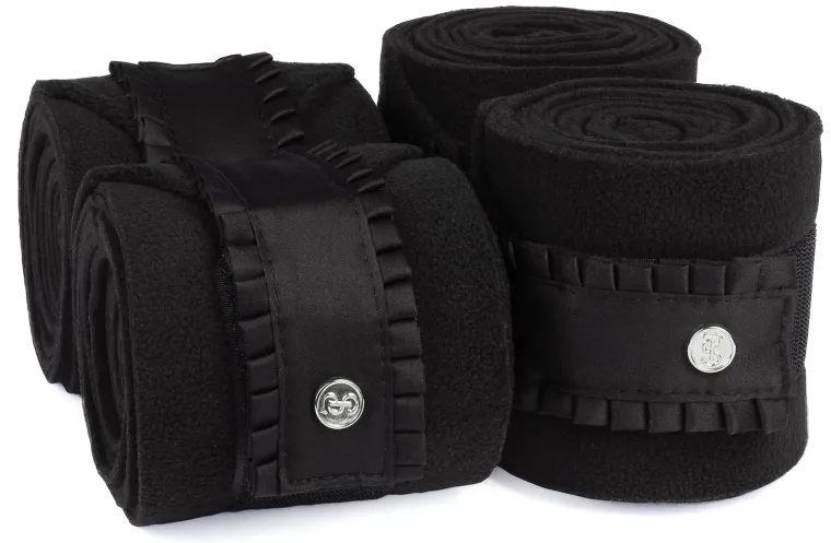 PS of Sweden Ruffle Polo Wraps in anti-pilling fleece make beautiful exercise bandages. Secure hook-and-loop strap closures have ruffle trim and a PS logo detail. Set of four wraps.