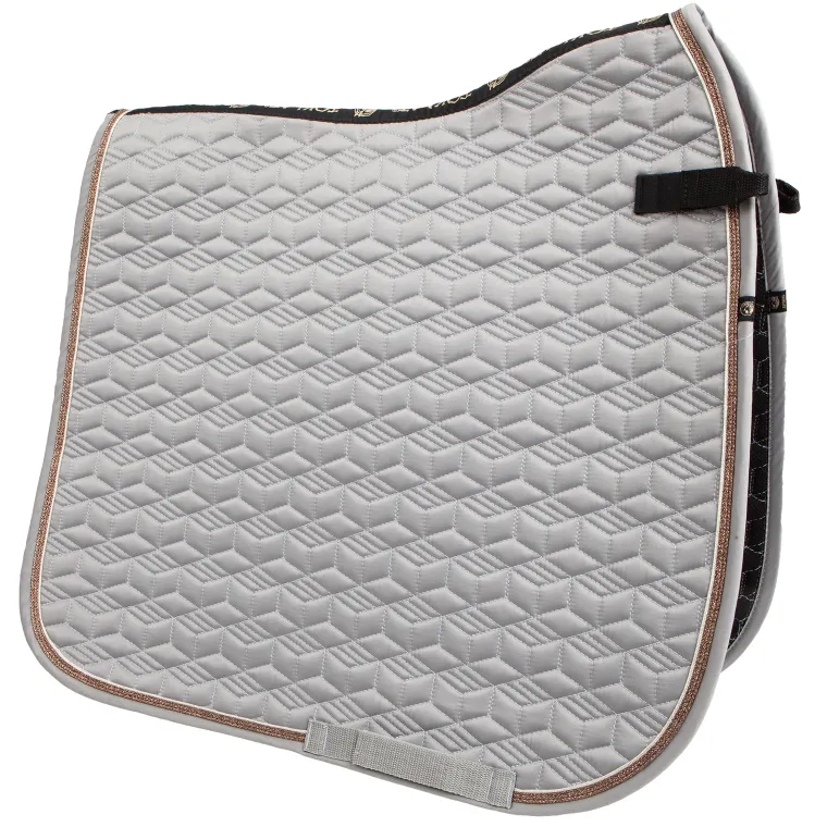The Toklat® Tango Geometric Dressage Pad is a perfect partner to your dressage saddle.It features a luxurious satin top, a distinctive geometric quilt pattern and shimmering silver metallic trim.This saddle pad is also lined with soft, waffle-shaped wicking material to provide heat and moisture management.