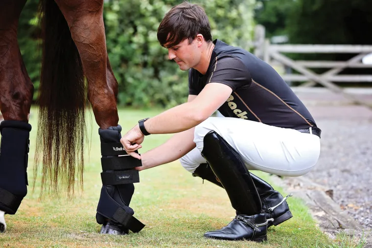 Back on Track® Royal Quick Wrapswith Welltex® technology are all-in-one standing bandages that may help decrease swelling and keep your horse’s legs cool and tight. State-of-the-art Welltex material with embedded ceramic particles uses the horse’s own body energy to create a soothing far infrared effect, allowing for increased blood circulation and relaxed muscles, tendons, joints and ligaments.