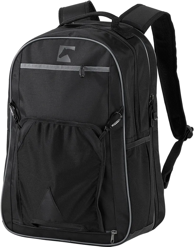 On-the-go and in-the-know, real riders designed this Riding Sport™ Backpack to hold all those items you take along for a day of riding. An outside front pocket stretches to store your helmet securely and can be stowed in a zip pocket in the bottom of the bag when it’s not needed. A full-size water bottle slips into a large mesh side pocket, and a side holder keeps a crop or whip handy.