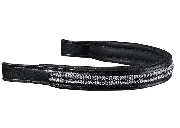 Those who prefer a little more bling will love the Triple Crystal Browband at a full 1″ wide with its two rows of silver crystals and one row of black crystals.
