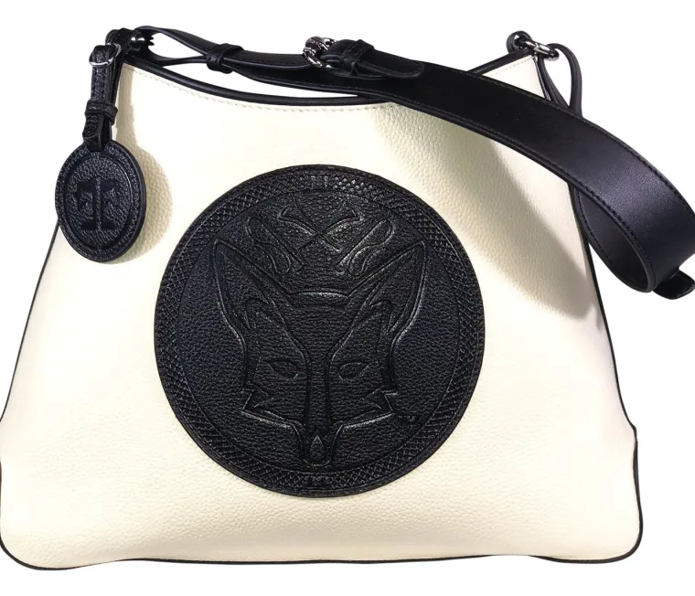 - Cream satin branded lining.