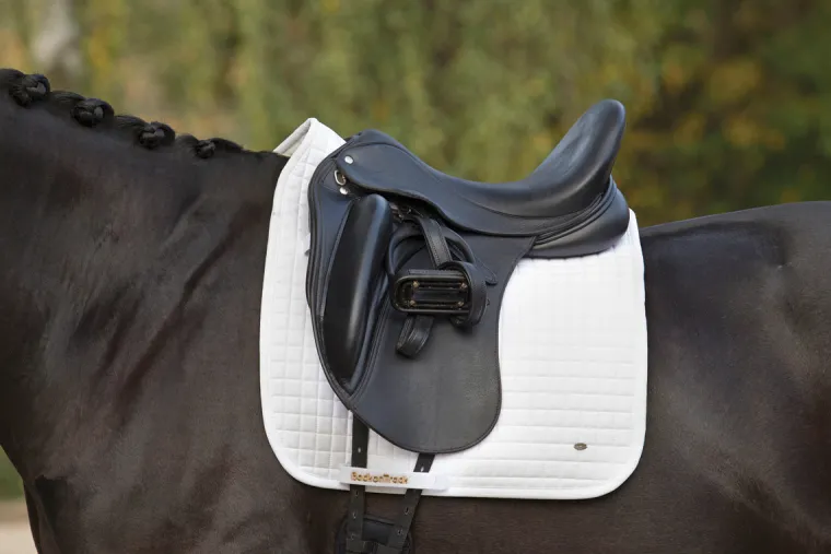 The Back on Track® Dressage Pad is made with pure, 600-gram cotton padded with 200 grams of Welltex® felt. This well-composed padding helps control temperature, provides breathability, distributes pressure and absorbs shock. The cotton outer timeless look ideal for training and competition; the small, square quilt pattern ensures smooth, stable support for your saddle.