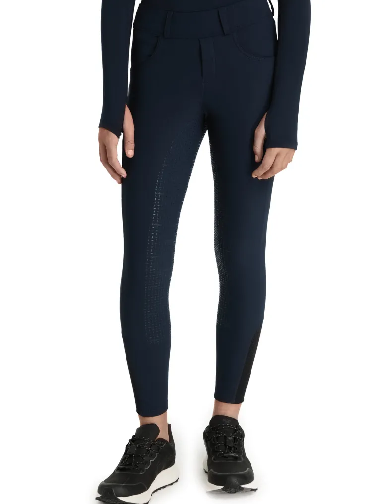 Make cold-weather rides much more pleasant with the LeMieux® Young Rider Ella Bregging. Get the smart and structured breech look, with belt loops and faux fly zip. The technical fabric has a brushed inner lining for extra warmth. A full silicone printed seat offers stability in the saddle. A scoop pocket on the leg is the ideal easy-access place for your phone, and a side zipped pocket is perfect for valuables. The lower leg is cleverly designed with no inside leg seam for maximum comfort and close contact. Tapered seams deliver a flattering fit, and a thin mesh sock makes for reduced bulk under thick socks and tall boots.