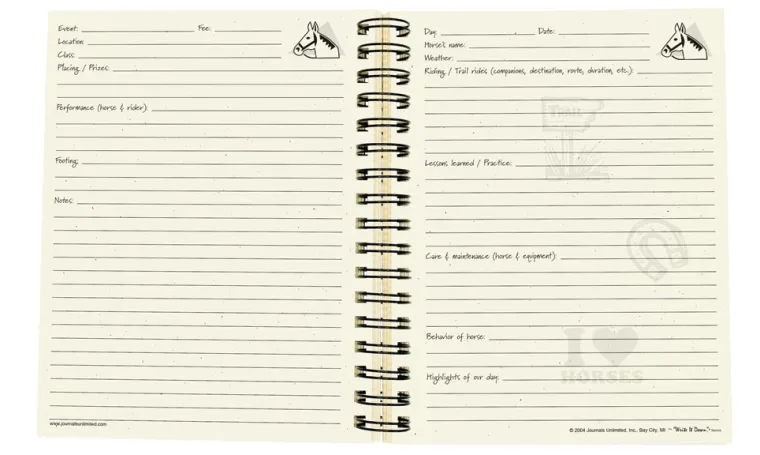 Horses – A Rider’s Journal is designed as a perfect place to record trail riding experiences and horse show competitions. The pages prompt you to log riding terrain, your destination and the names of your riding companions were. Another section for horse competitions encourages you to record your horse’s performance and prizes or places received.