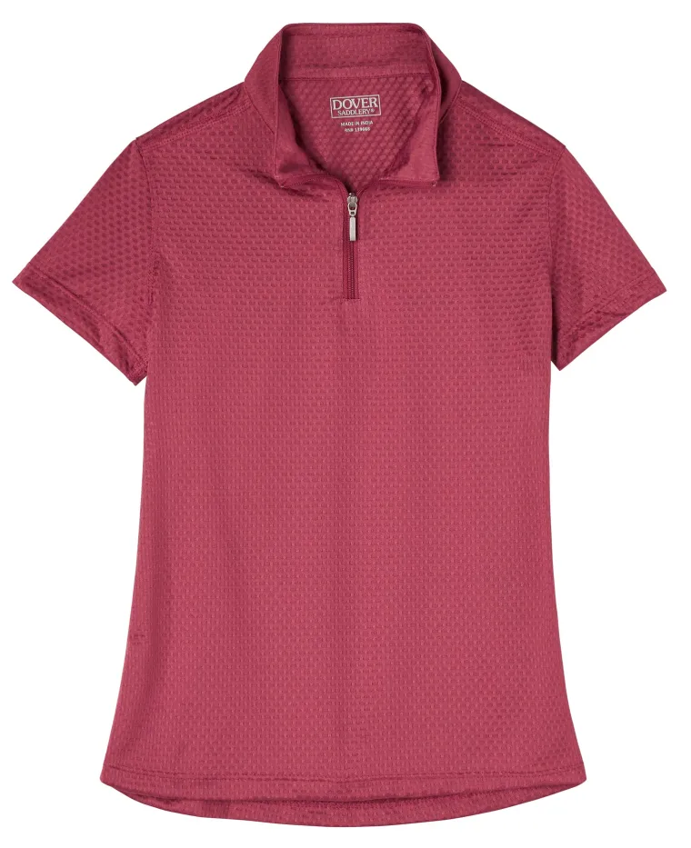 The DS Kids’ Marion Short Sleeve Shirt is made entirely of extremely lightweight, opaque mesh fabric. With high-volume airflow, this highly breathable top helps keep riders cool, and it dries quickly. Ample stretch plus shoulder-freeing raglan sleeves combine to promote mobility. Traditional mock neck, with hidden zipper and matching pull for a clean look front.