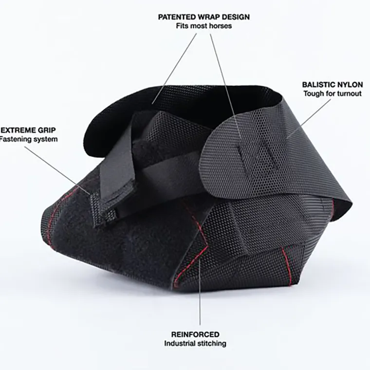 The Hoof Wrap is a multiuse, multipurpose bandage made from high-quality 1,600 denier ballistic nylon reinforced with industrial stitching. It’s tough, durable and stays in place to allow efficient healing. It’s also machine washable and can be reused for several days up to two weeks or longer, depending on the horse and the conditions. The bandage includes a 1/2″ thick EVA foam pad that helps relieve pain and pressure on the hoof, so your horse can move freely. A step-by-step numbering system printed directly on the bandage makes applying it to a hoof stress free and easy to understand. It’s also easy to remove, clean and reapply.
