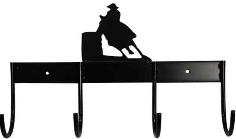 4-Hook Flat Tack Bar with Barrel Horse Silhouette offers space-saving storage with style.