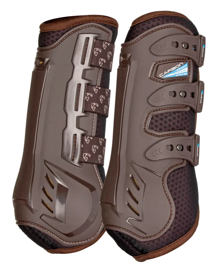 The ARMA Carbon Air Flow Training Boot delivers when a high level of all-around protection is needed. This lightweight, quick-drying professional quality horse boot has a triple impact support system: a strong TPU outer, an impact-absorbing vented neoprene center and a breathable mesh lining.