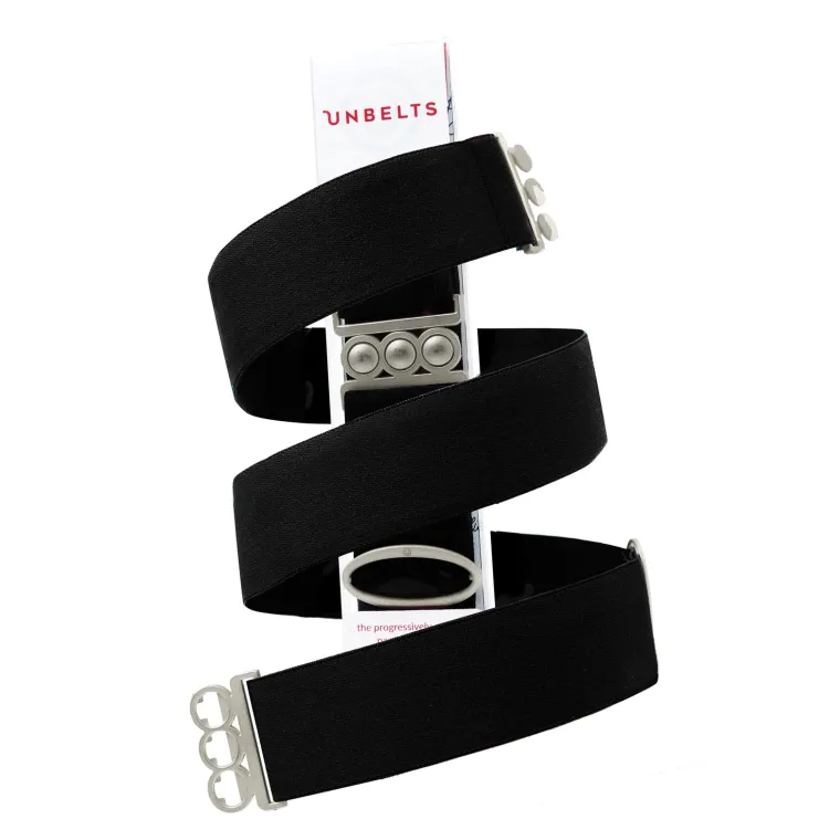 Thread an Unbelt through the belt loops of your breeches or jeans, and you’ll experience an unprecedented comfort and fit. With this ladies’ belt, you’ll never have belt buckle bulk under the front hem of your tee, a gap at the back of your waist or the laundry day hassle of un-threading it from your belt loops.