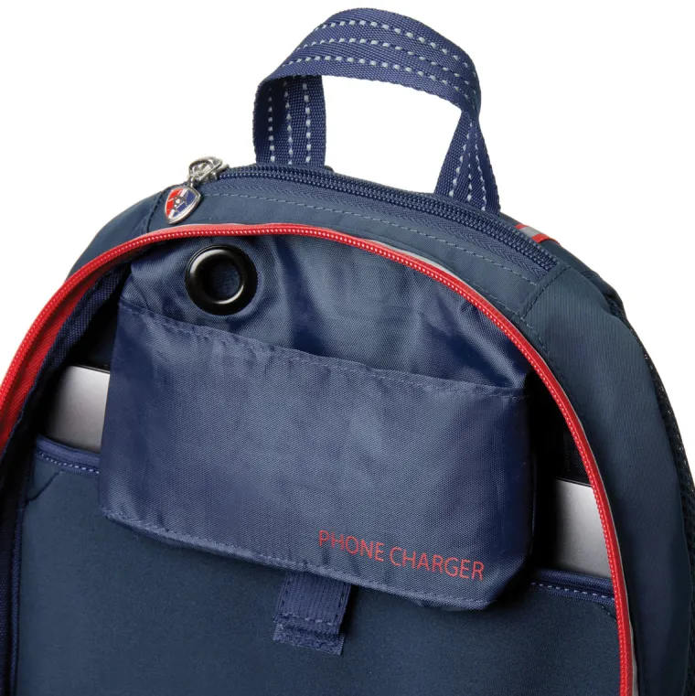 The Ariat® Backpack for riders keeps you on the move with maximum efficiency. A helmet “sling” on the front of the pack holds your hat and folds away when not in use. An insulated bottle pocket doubles as a snack cooler; a cold/hot pack is included. Clever organization features include a padded laptop/tablet sleeve, a side crop holder, a spur ring and multiple organizer pocket panels to hold pens and accessories. A cell phone pocket with access feature, along with a charger pocket, ensures you can stay connected. A clothes pocket holds wet or dirty clothes. Made of nylon with padded straps and a mesh back panel. 11.75″W x 18″H x 5.25″D.