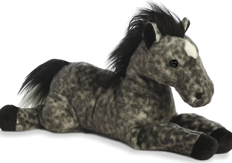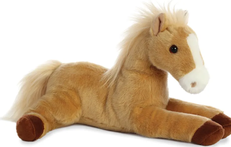 The Aurora® Flopsie has a satisfying, huggable size and realistic styling. This plush animal is made from high-quality materials to provide a soft, fluffy feel. This Piper Pony has a reddish brown color, gray hooves and a long cream-colored mane and tail. Bean filling ensures stability and quality.
