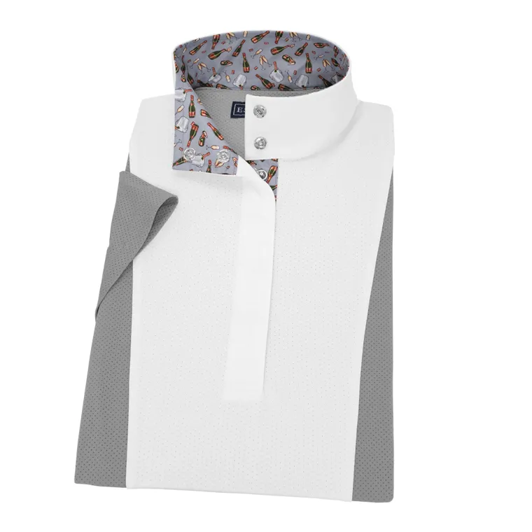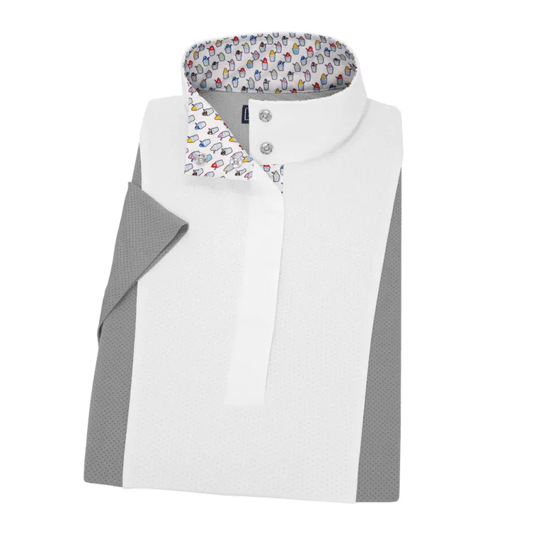 For comfort and color, this Essex Classics Luna Performance Short Sleeve Show Shirt makes a perfect choice. A white, full-length panel front with crisp white show collar partners with a solid color on the sides and back for a flattering look. Print trim details the inside of the collar and placket.