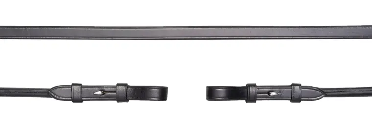 Schockemöhle Rolled Leather Curb Reins are crafted from high-quality leather to deliver a great hand feel. Sophisticatedrolled leather fronts have hook and stud ends. Silvertone fittings.