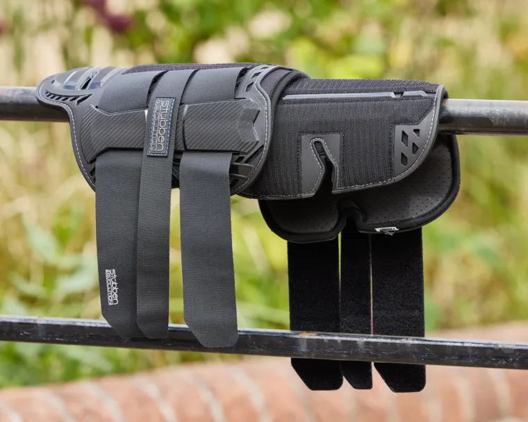 Stübben Hybrid Cross Country Front Boots offer a perfect blend of hard-shell protection and soft-shell flexibility. A shock-absorbing middle layer with advanced Poron® XRD Impact Foam effectively mitigates up to 90% of impact shock upon collision. A neoprene-free and perforated lining allows cooling airflow.