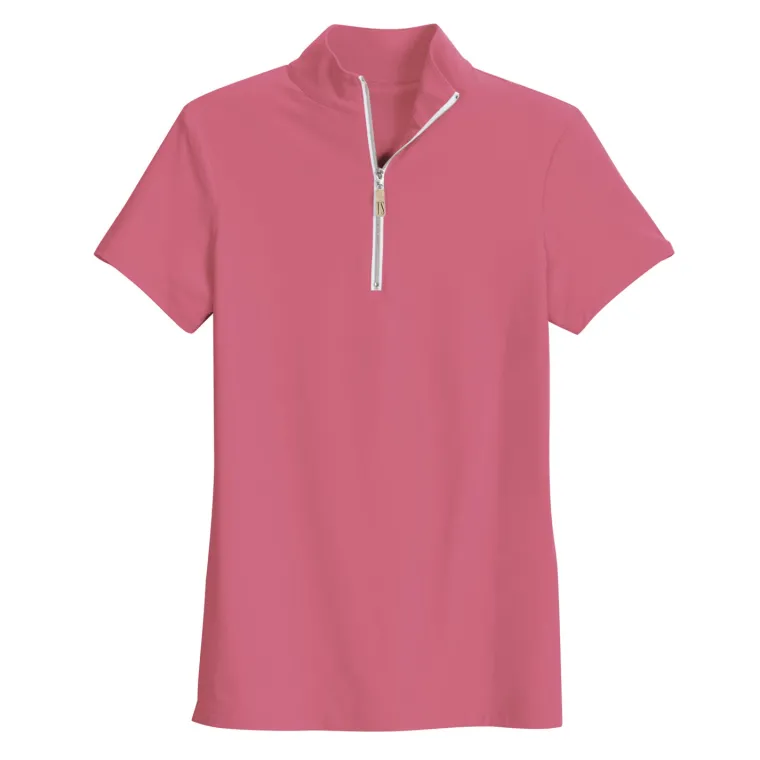 This semi-fitted riding top is lightweight, stretchy and moisture-wicking. A slightly brushed inner surface makes it feel luxurious on your skin. Styled for a polished look with a color-coordinated quarter zipper and stand collar.