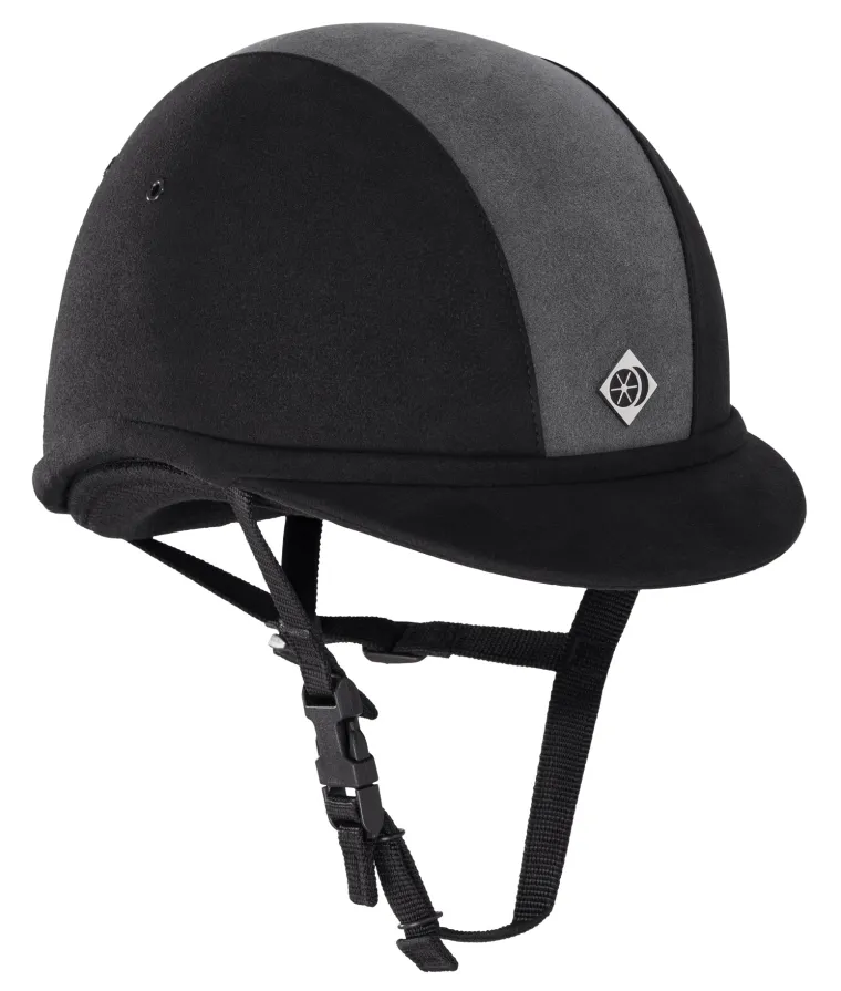 Charles Owen helmets are made to remain in place during riding and in the event of a fall. Each helmet grips the occipital bone located at the base of the rider’s skull so that the helmet cannot shift and alter the area of protection offered. This model has a black harness in a unique crossover design that utilizes a double tension adjuster on soft-edge nylon webbing. It completes the finished look and offers strength and security.