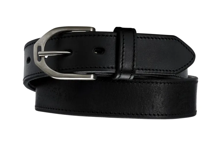 Unmistakably equestrian, this IconEQ™Stirrup Buckle Topstitch Belt is friendly to both breeches and jeans. Crafted from a strap of leather, it boasts eye-catching stitching and anickelbuckle shaped like a stirrup. 1.25″ wide; seven adjustment holes.
