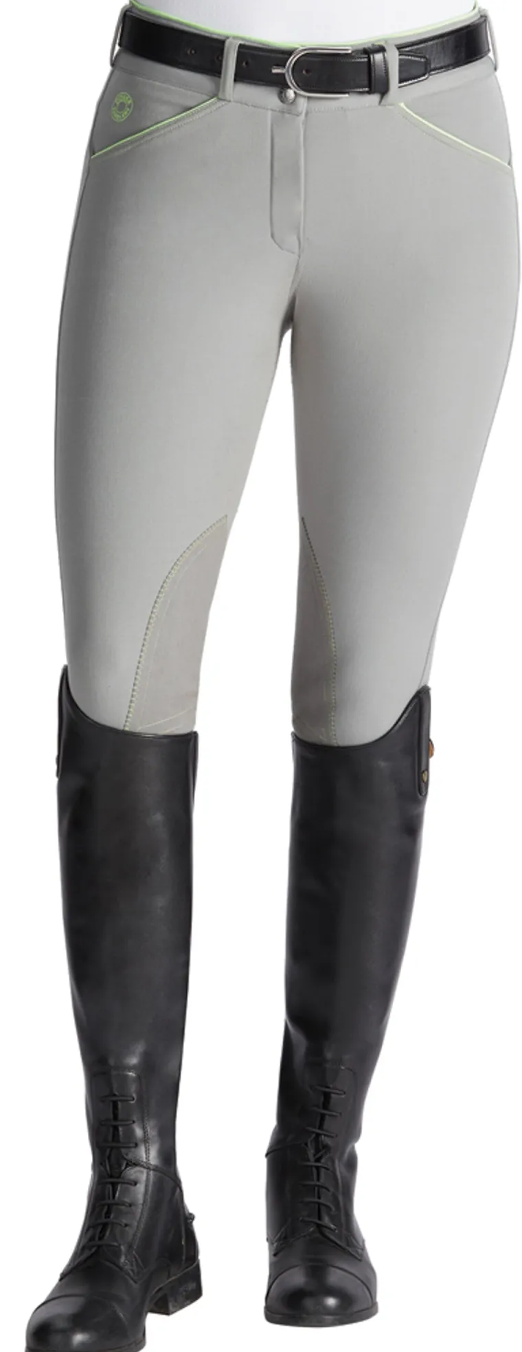 Designed to fit your curves without gaping at the waist, this breech features the mid-rise EquiTrue Rise™. It maintains a flattering, secure fit no matter how you move. It sits just below the belly button on most riders and suits every build well. The soft, covered waistband and seat won’t slide, slip, pinch or bind when you groom or ride.