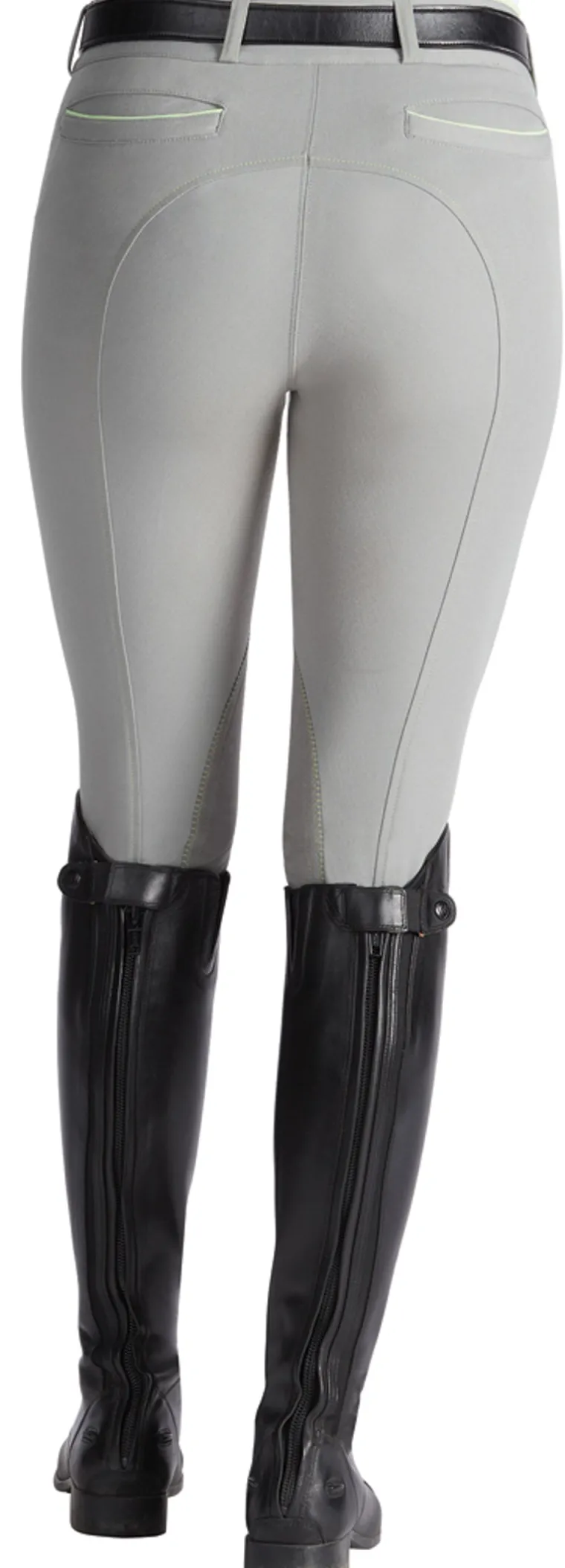 Single-layer, high-stretch calf panels offer a custom fit and eliminate bulk inside boots. Envelope back pockets are fully functional and trimmed with low-profile piping. Microsuede knee patches offer stability and hold.
